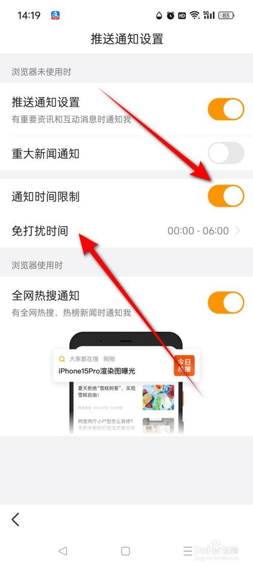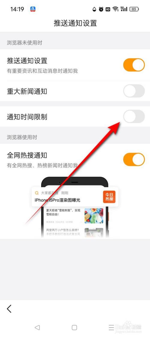 点击"通知时间限定"旁处于点暗状况的小滑块。