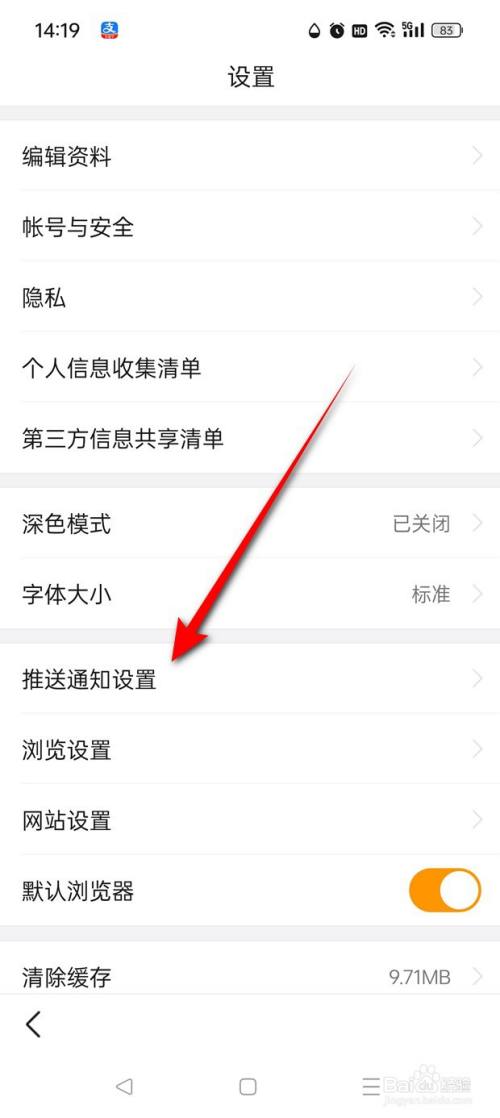 点击"推送通知设置"。