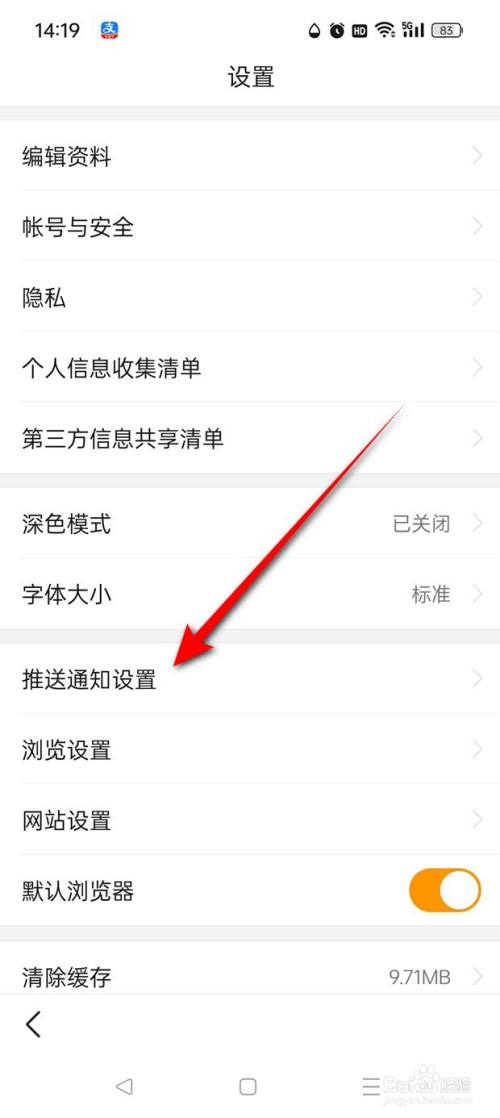 点击"推送通知设置"。
