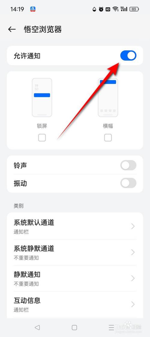 将"许可通知"旁的小滑块点亮。
