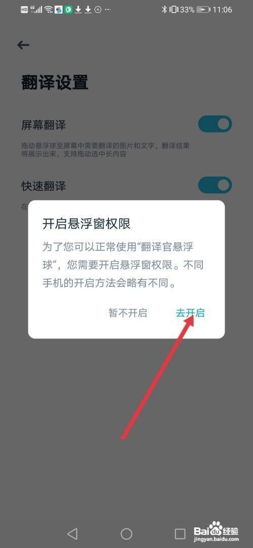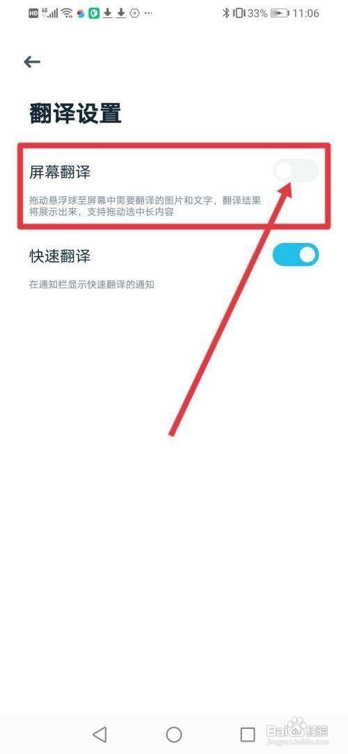 来到翻译设置,然后把【屏幕翻译】的按钮开启。