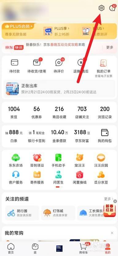 进入我的页面,点击右上角的设置图标