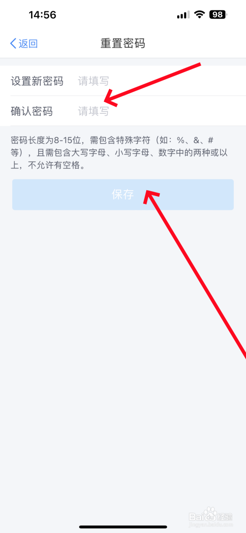最后在重置密码的页面输入"密码"后选择"生存"按钮。