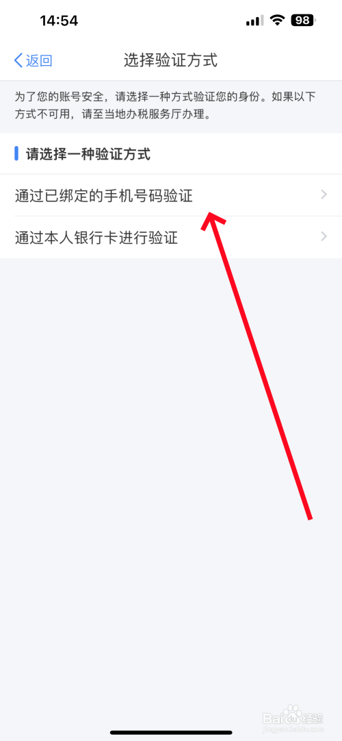 打开选择验证方式的页面选择"经由过程已绑定的手机号码验证"选项或"经由过程本人银行卡举行验证"选项;