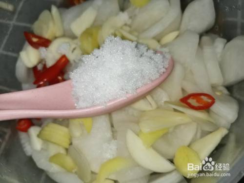 倒入一勺半的白糖调鲜