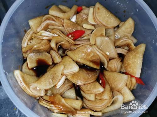 插手方才筹办好的质料,放入保鲜盒内里,摇晃一下,让内里的质料与萝卜充实接触,放进冰箱上层,冷藏一晚,味道的确甘旨~~