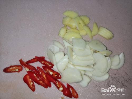 小米椒,超等辣,我就放了两个,蒜,姜,小米辣切片,备用