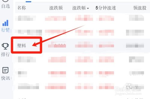 找到【涨跌幅】,如图,这样,我们就可以看到塑料类股票的涨跌幅是几多啦!