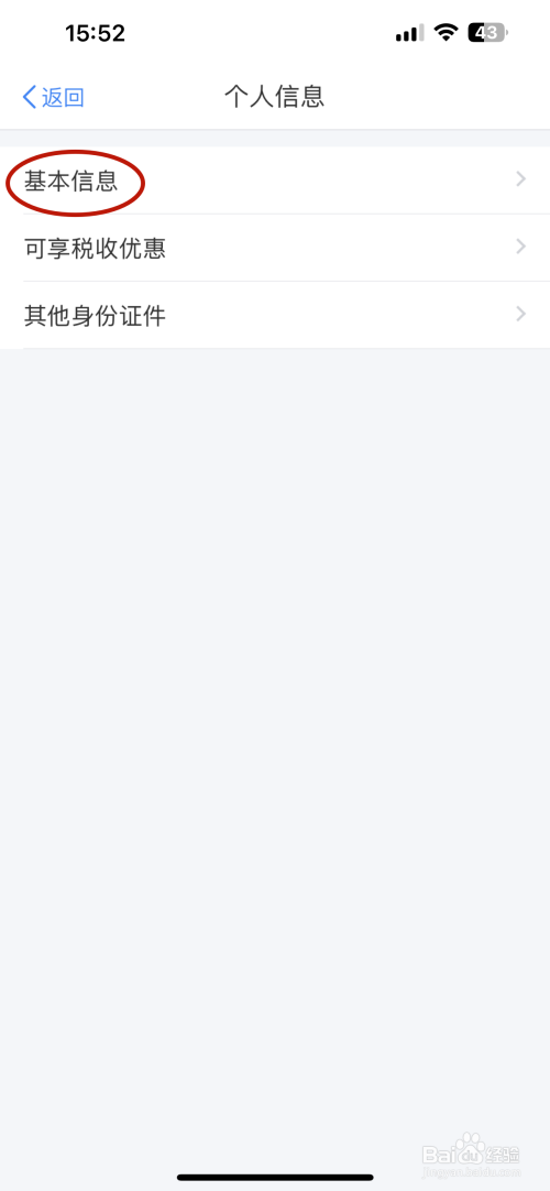 进入个人信息的页面点击诉羞【基本信息】选项;