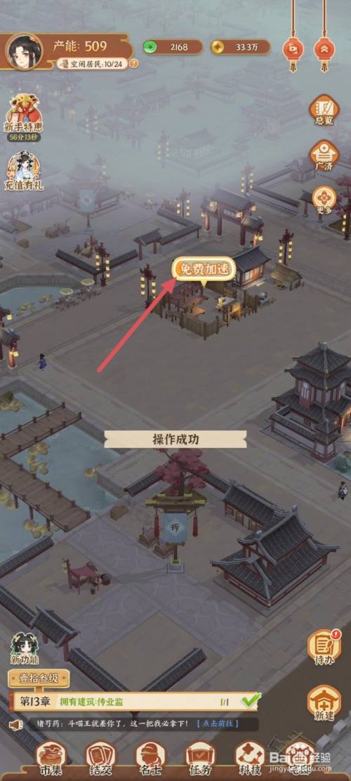 点击修建上方的免用度加快按钮。