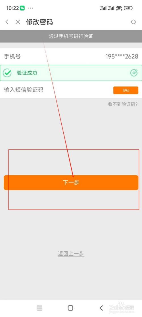 在廊政验证界面中输入验伐侵针证码后,点击"下一步"