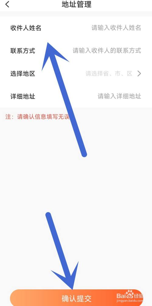 在后,按照提醒,编纂收货地址信息,点击确认提交。
