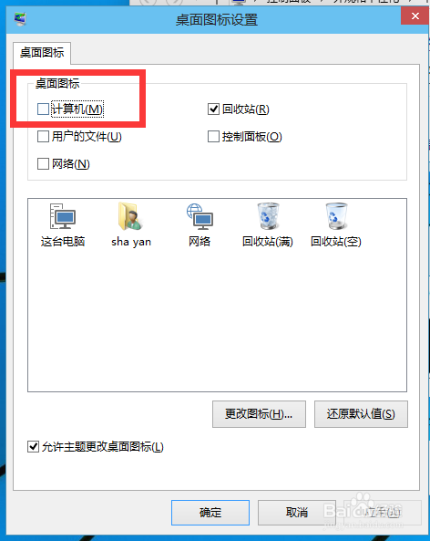 在如图示位置,将"计较机"勾选,然后点击"应用"--"确定"。