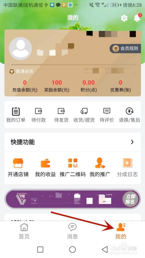 点击箭头指标的目的的"我的"选项