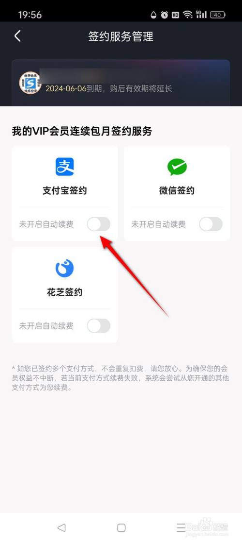 点按"已开启主动续用度"旁处于点亮状况的小滑块。