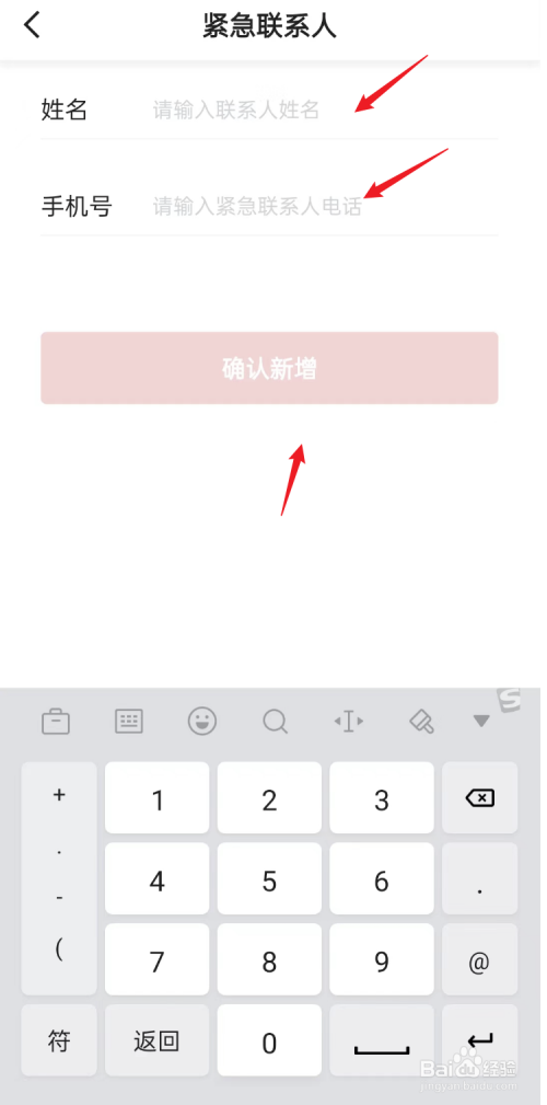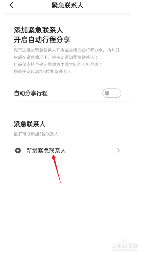 进入到新界面,点击底部的新增紧急接洽人选项。