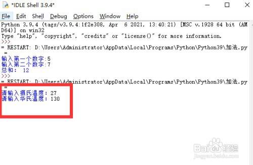 print("摄氏温度{}转换为华氏温度为:{}".format(a,c))