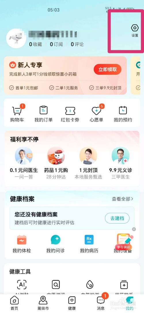 打开京东康健APP,点击右下角的我的,