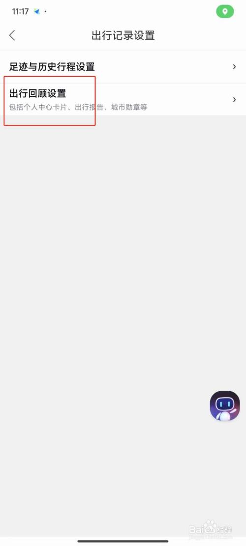第五步:在出行记载设置页面中点击【出行回首设置】