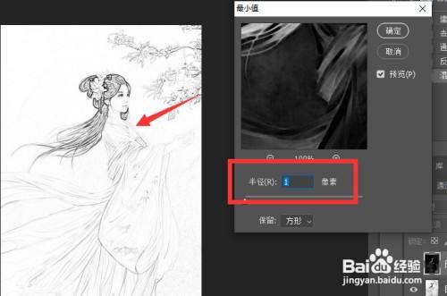 设置一个较小的半径值,好比置为1,点击"确定",图片就酿成线稿轮廓了