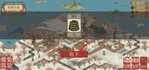 进入【筑景】页面,每介入筑景一次可得到【铜铃】20。