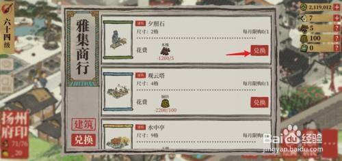 进入雅集商行,可利用【木椽,铜铃】兑换以下特色修建。