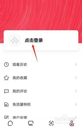 在我的页面中,点击箭头所指的点击登录选项(如图所示)。