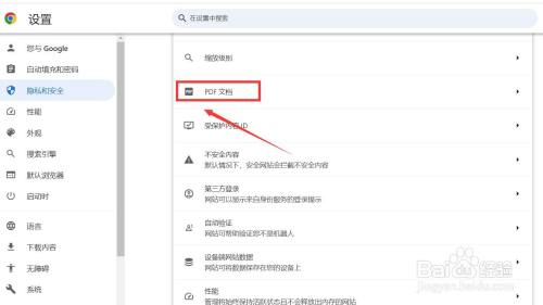 进入PDF文档界面,勾选"在 Chrome 中打开 PDF 文件"。