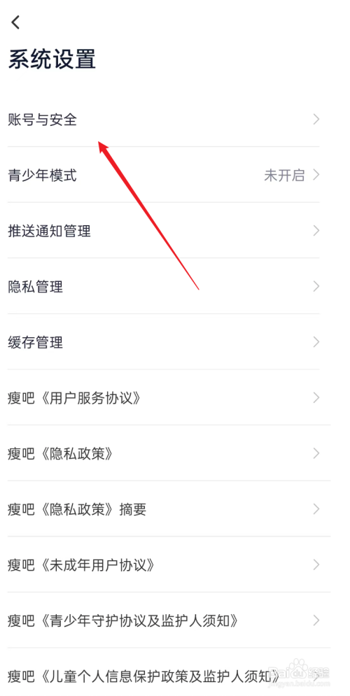 进入到体系设置菜单栏中,点击账号与安全选项。