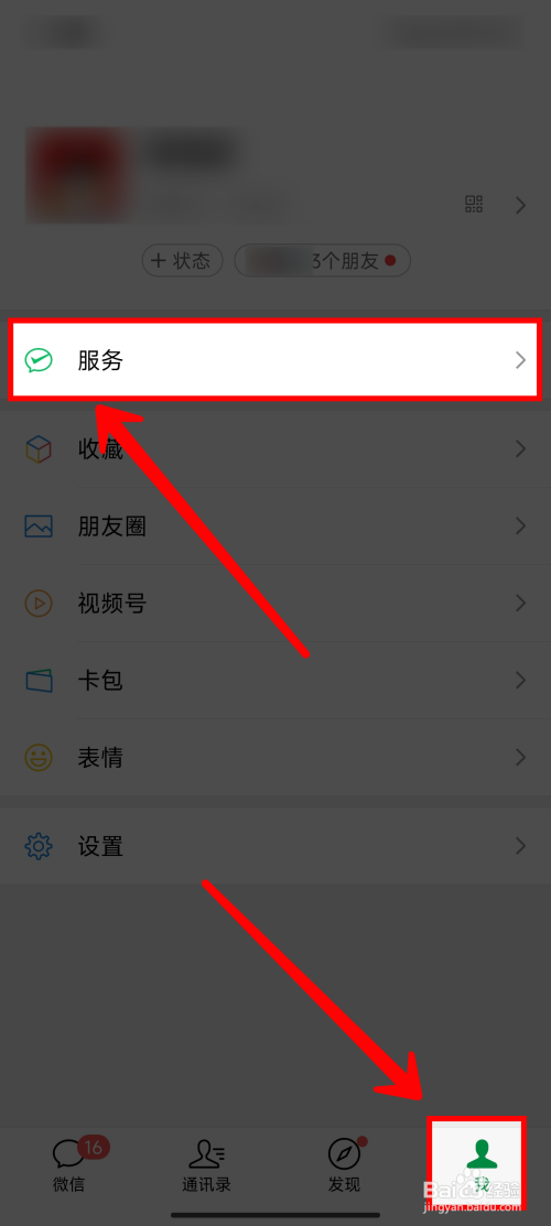 打开微信APP,在【我】的页面点击【办事】。