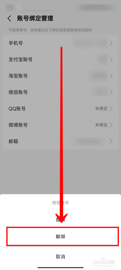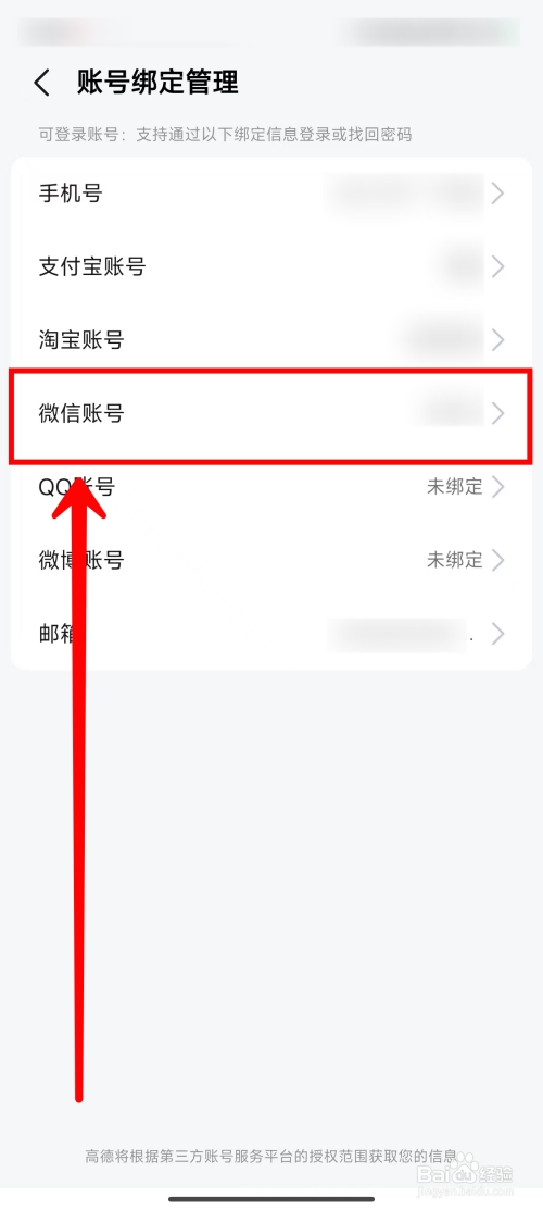 进入账号与安全页面,点击【账号绑定办理】选项。
