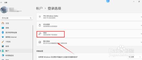 进入登录选项界面,点击"密码"。