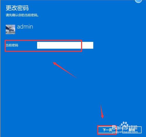 进入更改密码界面,输入当前密码,点击"下一步"。