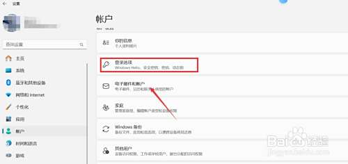 进入帐户界面,点击"登录选项"。