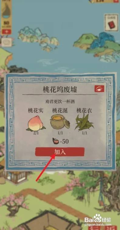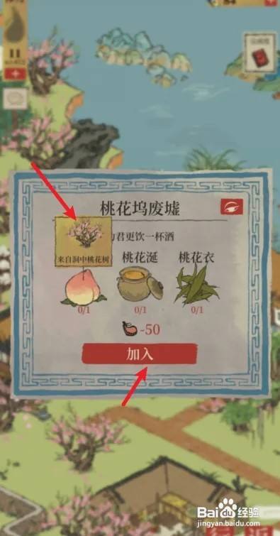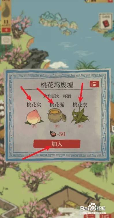 栽完桃花树后点击【插手桃花坞废墟】,需要三个前提:【桃花实,桃花涎,桃花衣】。