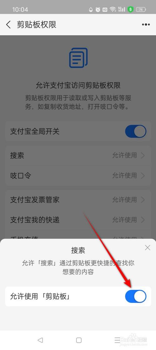 将"许可利用剪贴板"旁的小滑块点亮即可开启许可。