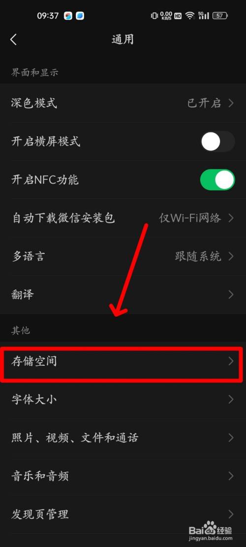 3、点击"存储空间"。
