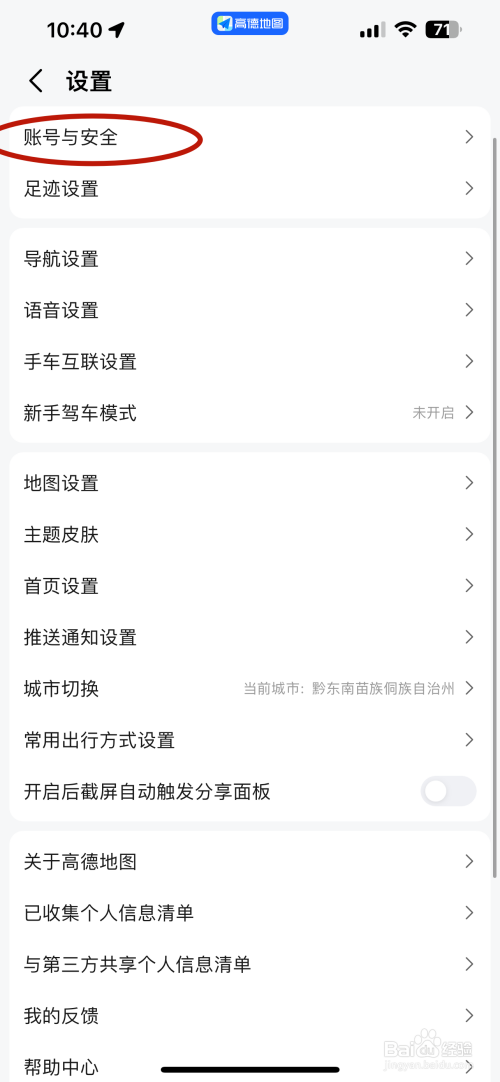 点击【账号与安全】选项;