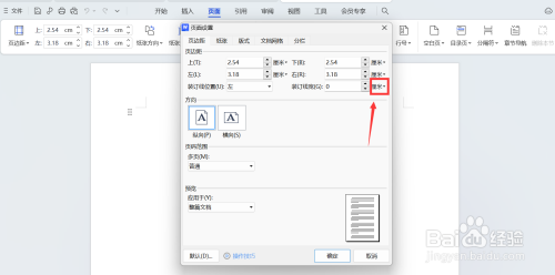 进入页面设置界面,点击"装订线宽"右侧"厘米"。