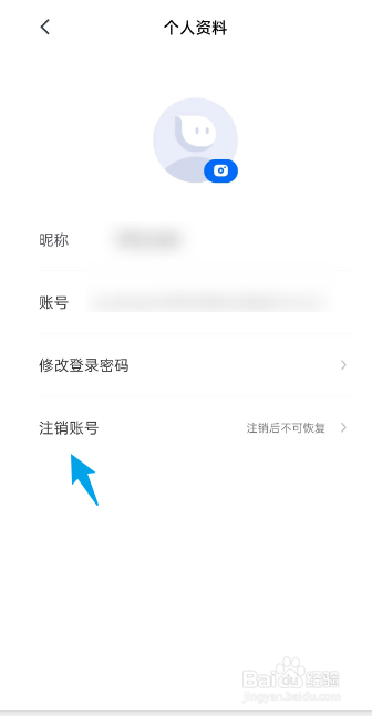进入到个人资料菜单栏中,点击刊出账号选项。