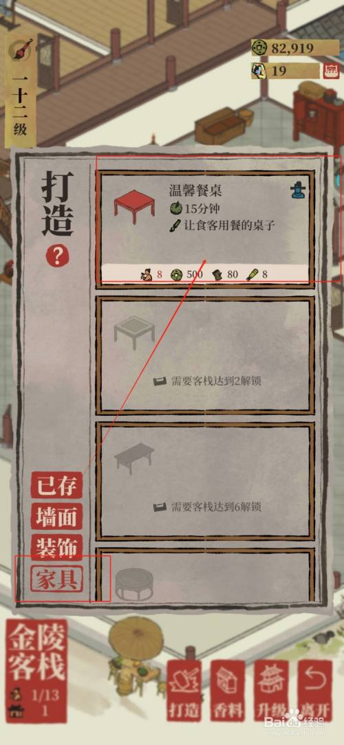 工具/原料小米10 ProMIUI14.0.4江南百景图3.1.1方法/步骤1第一步,打开江南百景图,点击【客栈】。2第二步,点击【打造】。3第三步,筹办所需物料,点击【温馨餐桌】。4第四步,点击【打造卖力人】。5第五步,为餐桌选址,确认后,点击【√】。6第六步,点击【打造】,打造竣事后,餐桌就打造好了。END