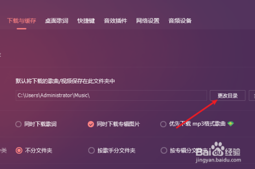 鄙人载与缓存选项中点击右边的"更改目次"按钮。