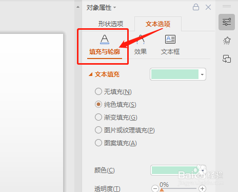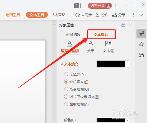 打开设置窗口,在右侧对象属性中,选择"文本选项"。如图: