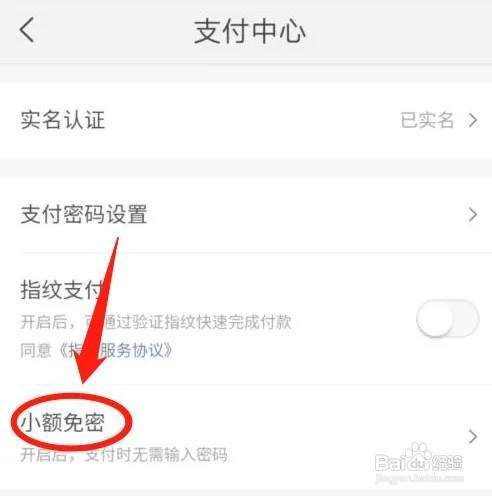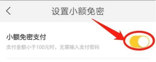 第五步,在设置小额免密界面,找到【小额免密支付】,封闭后方的开关按钮。