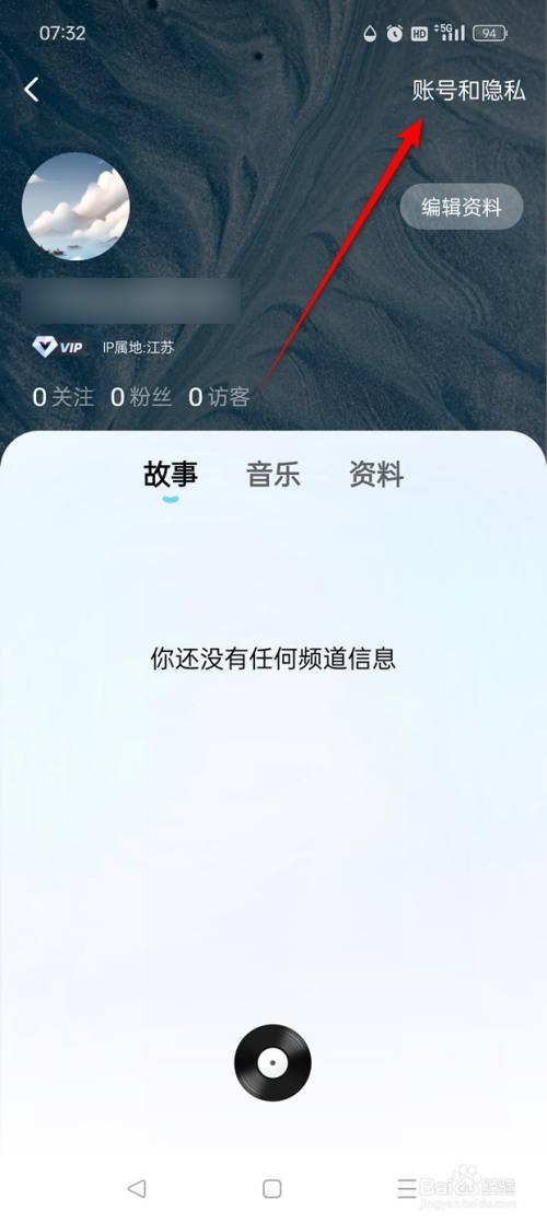 点击"账号与隐私"。