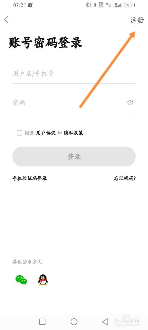 点击上面的注册选项。