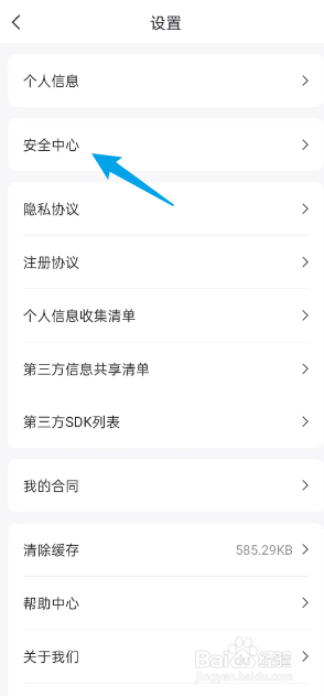 进入到安全中间菜单栏中,点击修改注册手机号选项。