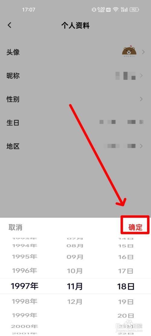 步调六,选择生日日期后点击"确定"即可。