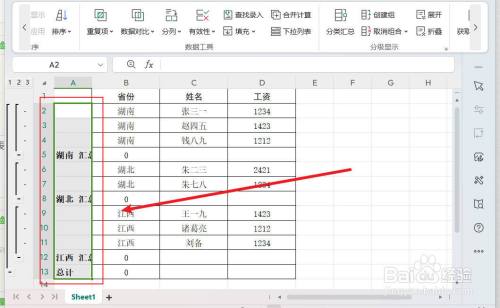 以下面表格为例,第1列为需要归并的列。
