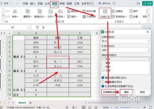 选择汇总项为第1列,其它连结稳定,点击【确定】。